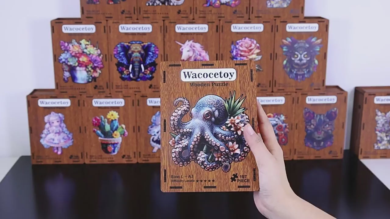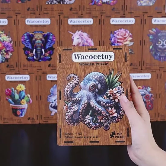 Piece together the intricate textures of a blue octopus and vibrant tropical florals for an immersive underwater escape. Made with 3.6mm thick wood, it features hidden unique shapes and comes in two sizes. Packaged in a vintage wooden box, it’s perfect for stress relief, wall decor, or gifting.