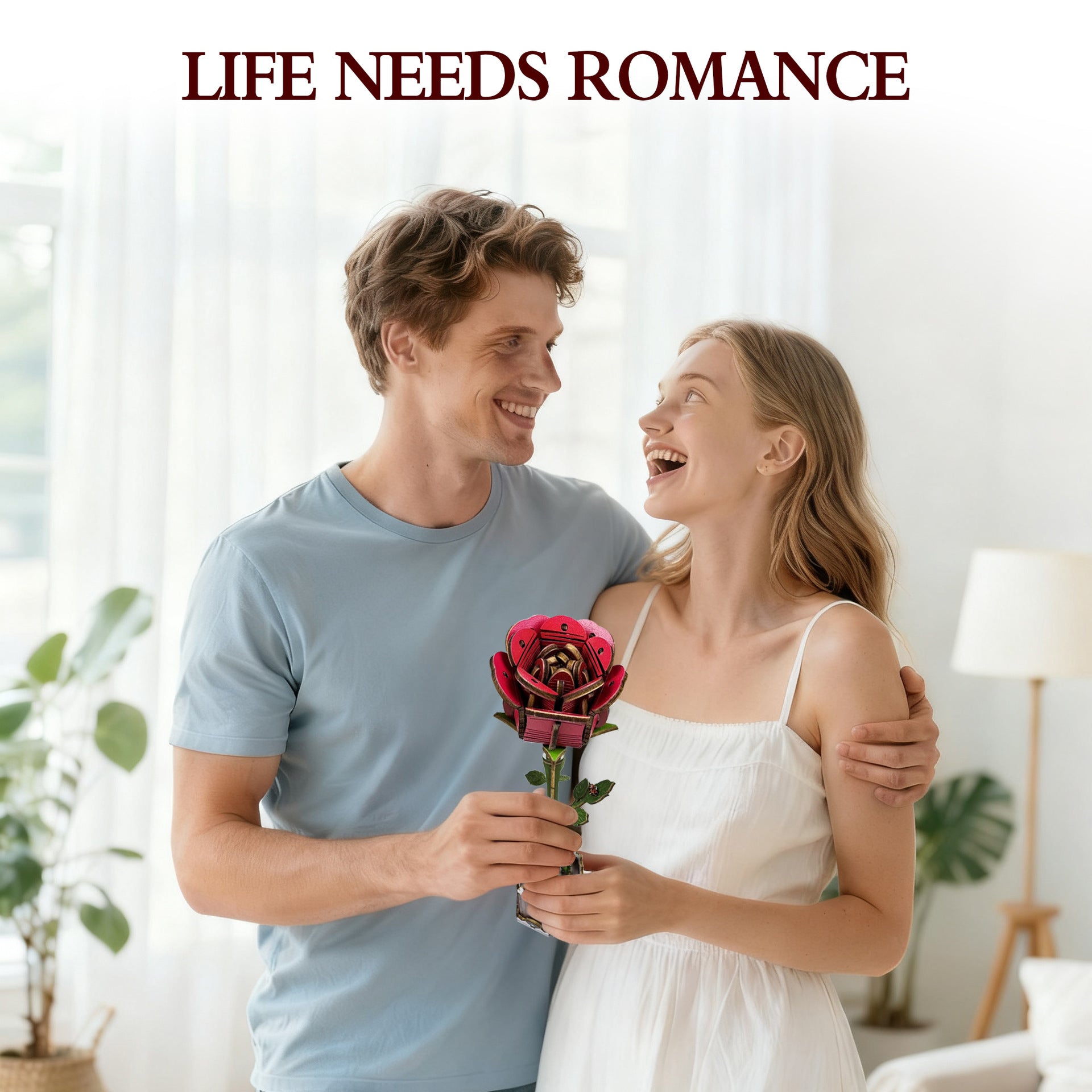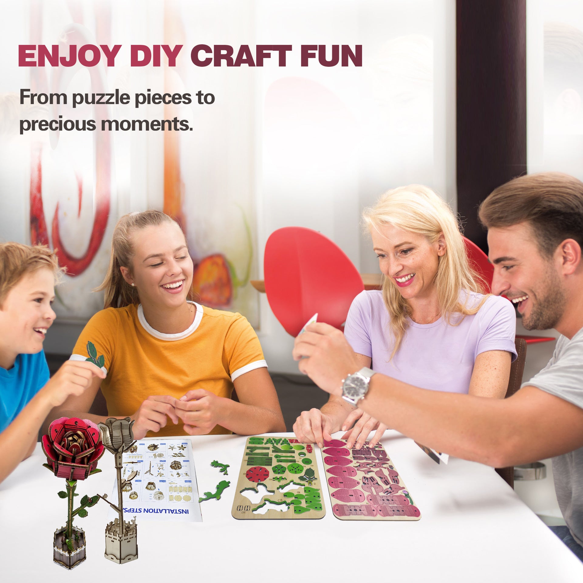 Red Rose Puzzle 3D Wooden DIY Coloring Toy Two-in-One Set Decoration Puzzle